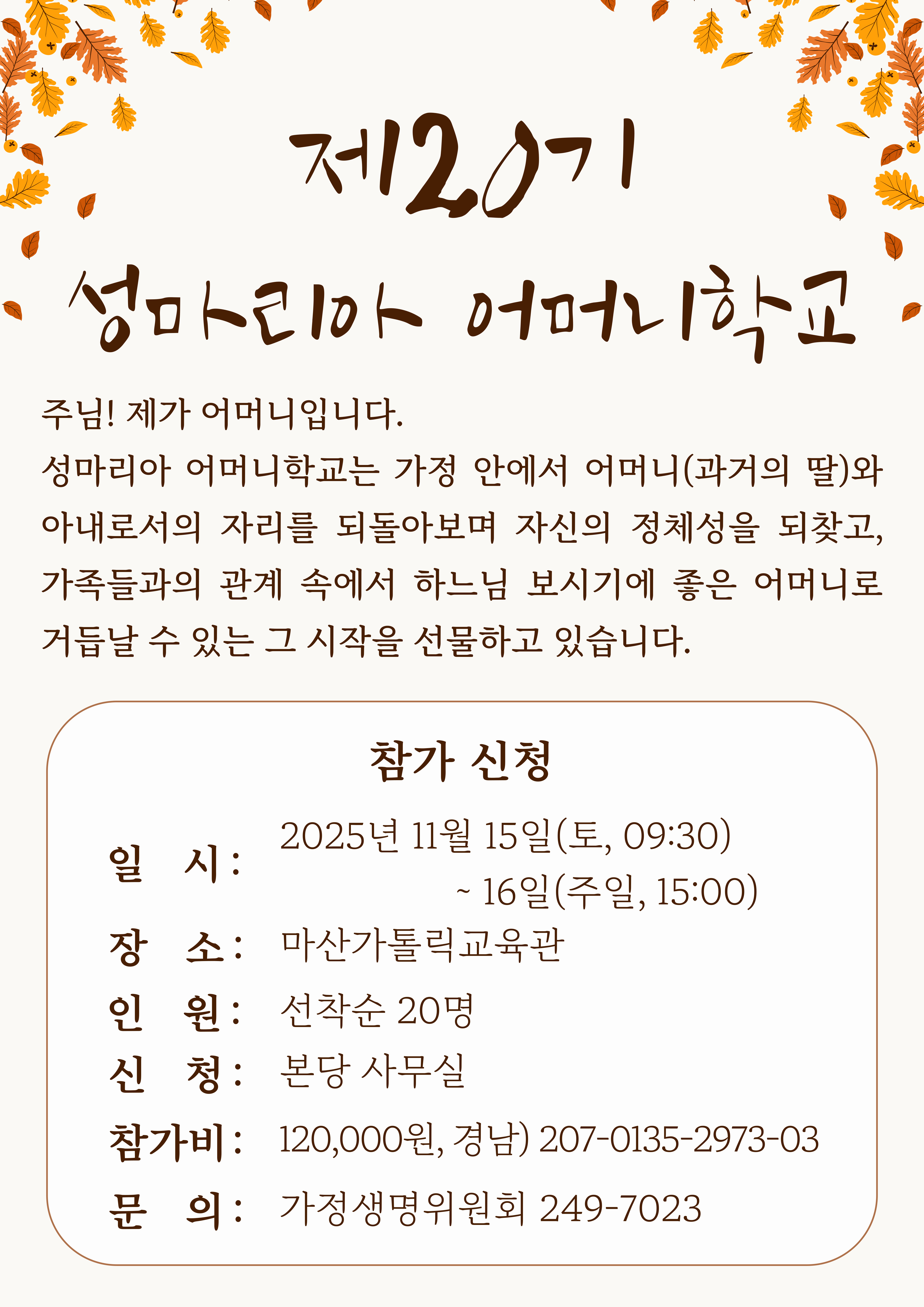 Copyright (C) 2012 ~ 2024 Diocese of Masan. All rights reserved.